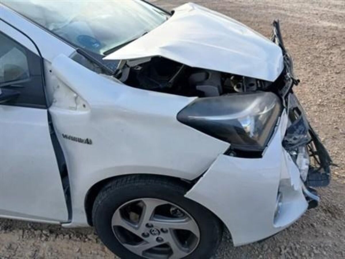 Toyota Yaris Híbrido año 2016 con golpe delantero y trasero derecho: