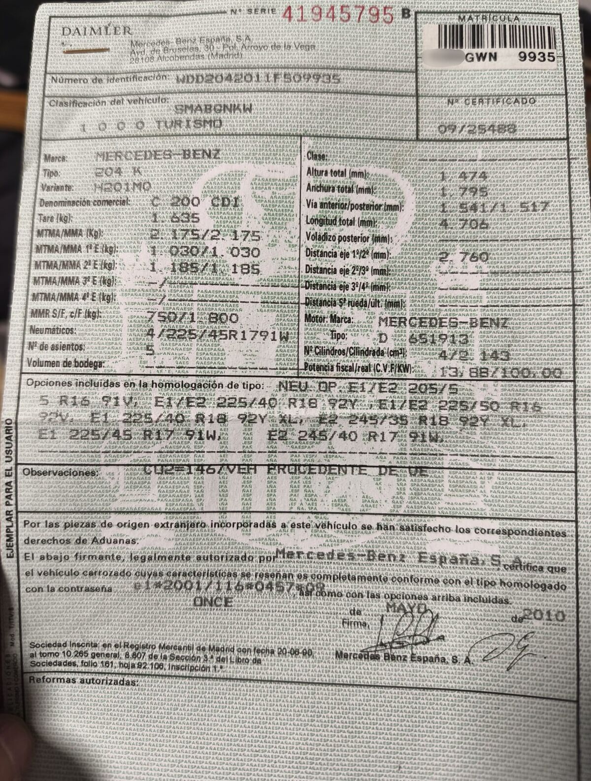 Motor: 200 cdi de 136cv