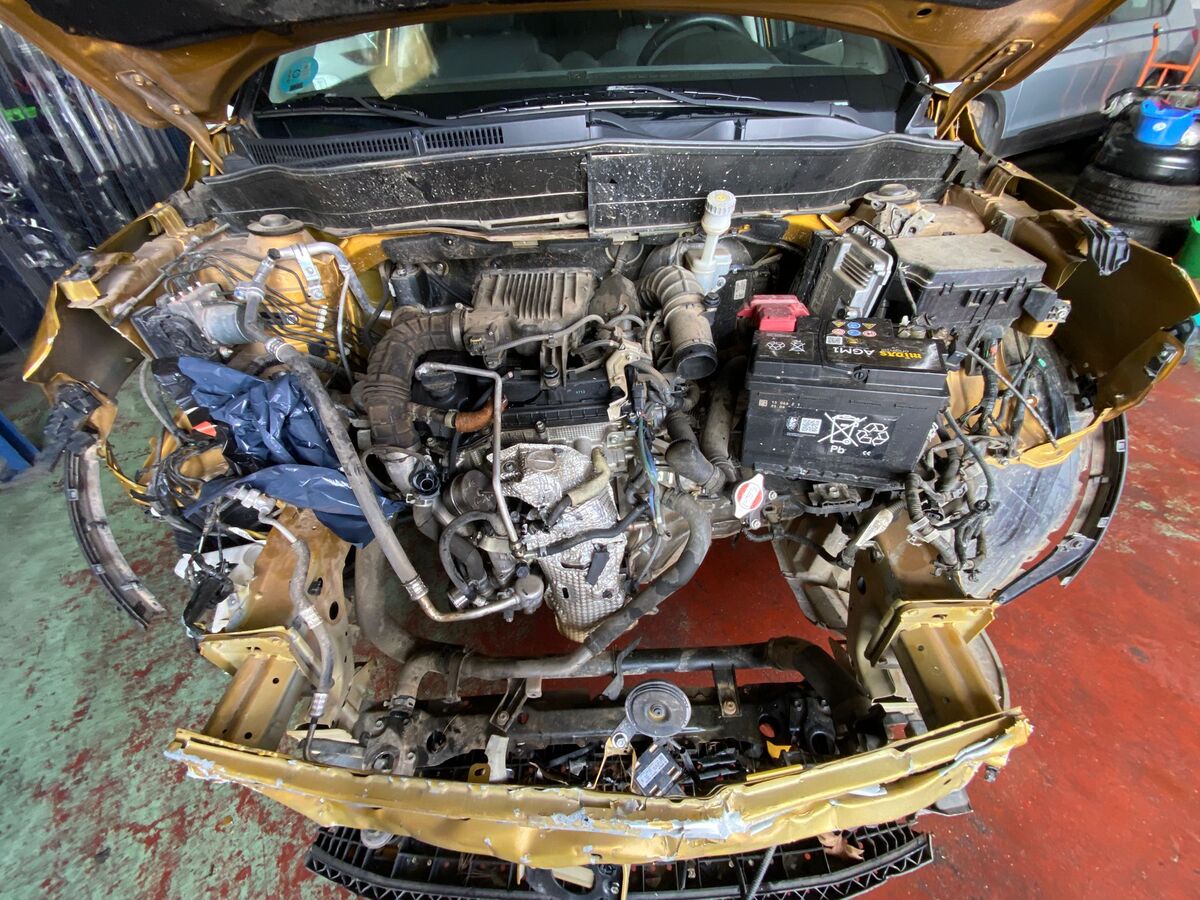 VEHICULO CON GOLPE FRONTAL; MOTOR DAÑADO; TAPA DE DISTRIBUCION Y CULATAS AFECTADAS.